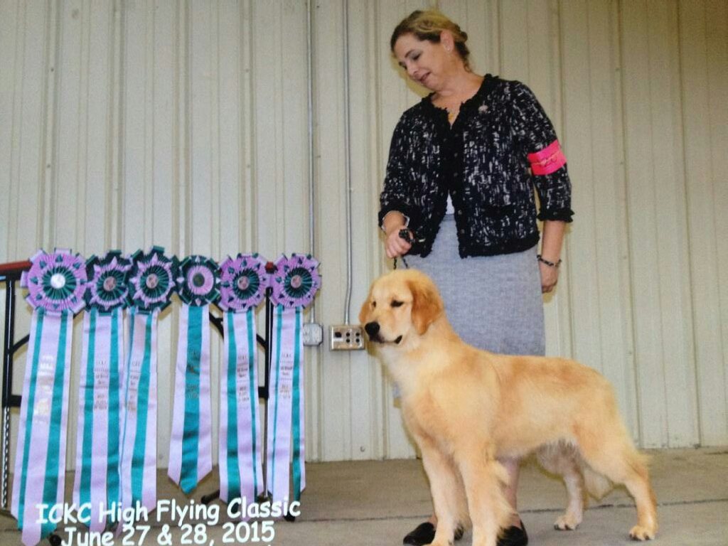 This is Tebow, who is owned by Seasons Gold in his very first show at 5 mo. Five BIS and one RBIS!!! In his first ever AKC show at Greensboro he went WD/BOW his first time in the ring. What a bright future his lovely boy has.